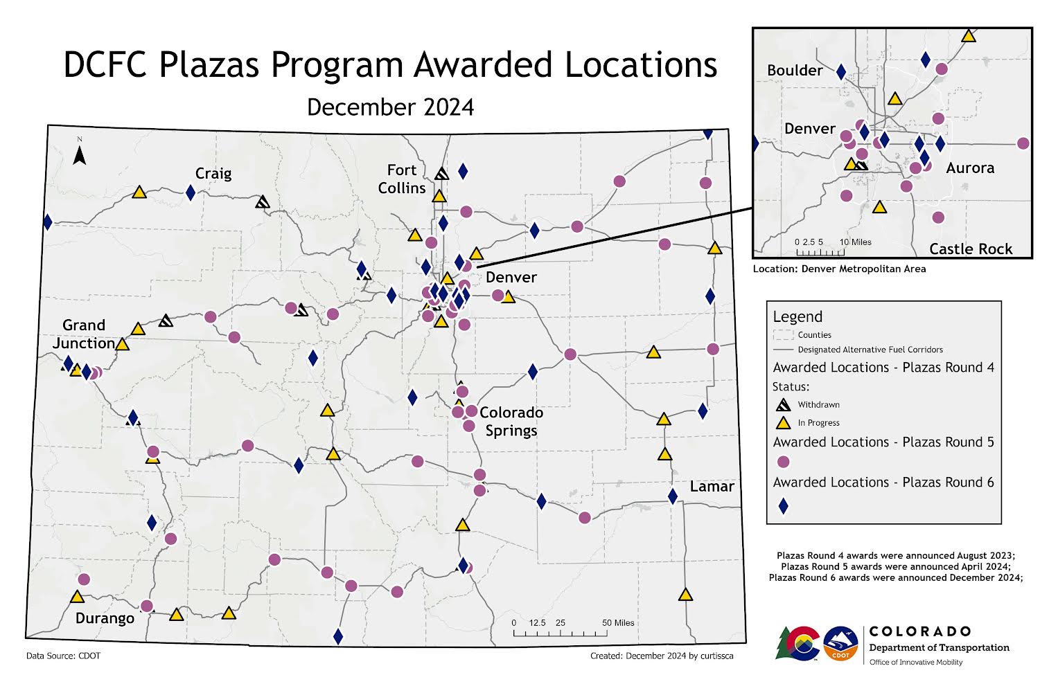 DENVER - Today, Governor Jared Polis, the Colorado Energy Office (CEO), and the Colorado Department of Transportation (CDOT) announced $17.3 million in grant awards through the Direct-Current Fast-Charging (DCFC) Plazas program. With funding from the National Electric Vehicle Infrastructure (NEVI) Program — part of President Biden’s landmark Infrastructure Investment and Jobs Act — and the state’s Community Access Enterprise (CAE), these grants will fund 172 new fast charging ports at 29 locations across the state.