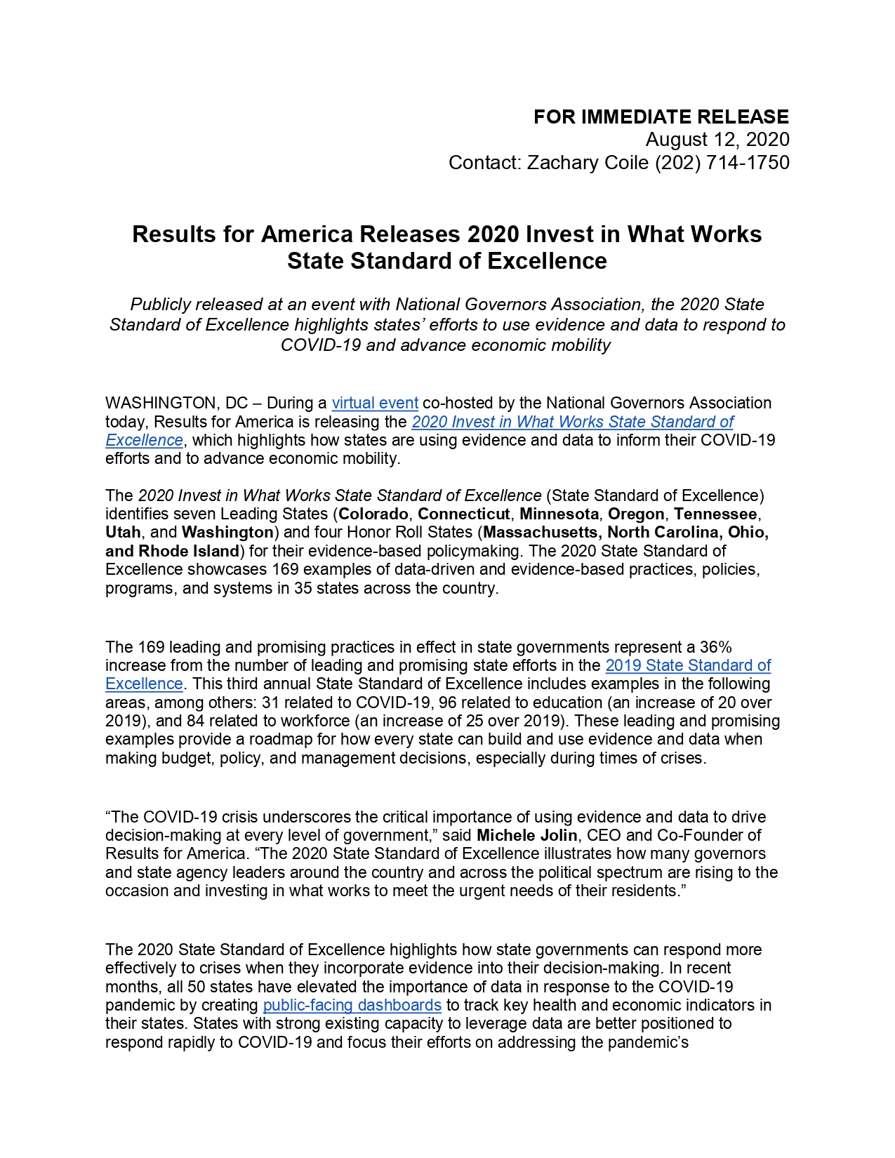 Results for America: Colorado was recently recognized by Results for America as one of the leading states in the nation in connecting its budget to data and evidence for the second consecutive year. The state is focusing its resources on programs that are proven successes through data and research.